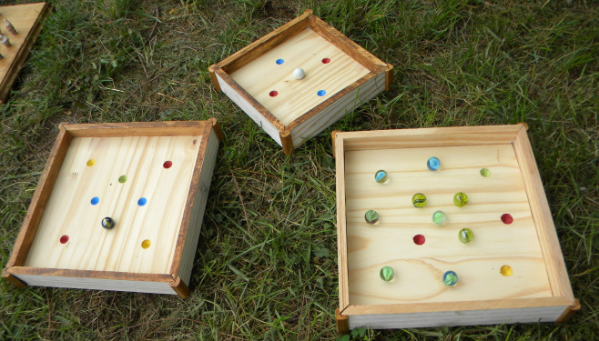 autour des jeux en bois d'antan. Seul ou à plusieurs.